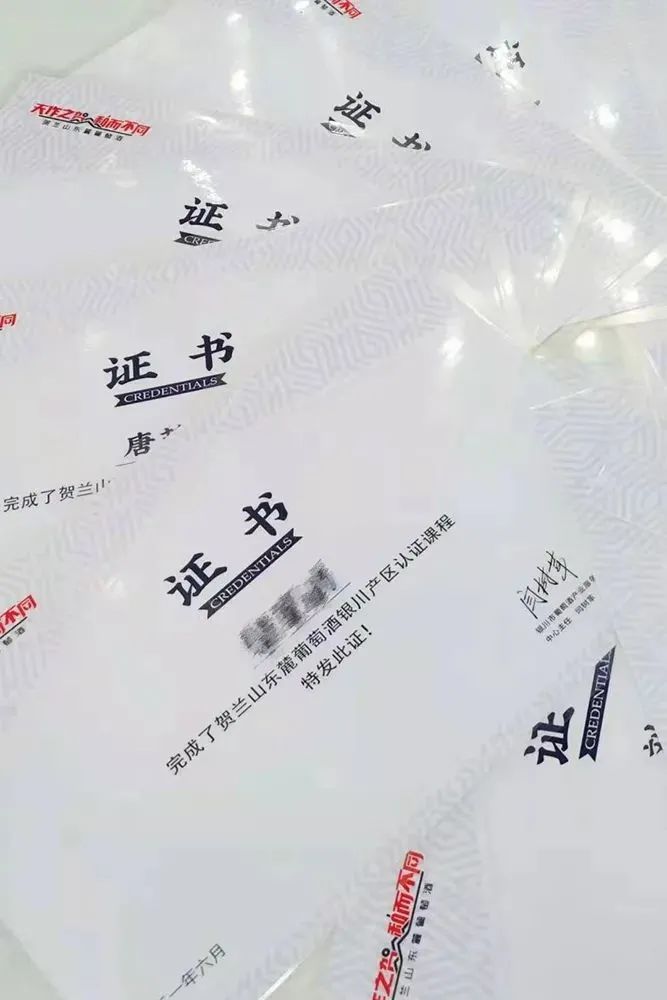 课程结束后,学院即可获得产区认证的品酒师证书,该证书由葡萄酒产业联盟根据实际授课人数登记备案,统一管理证书编号。