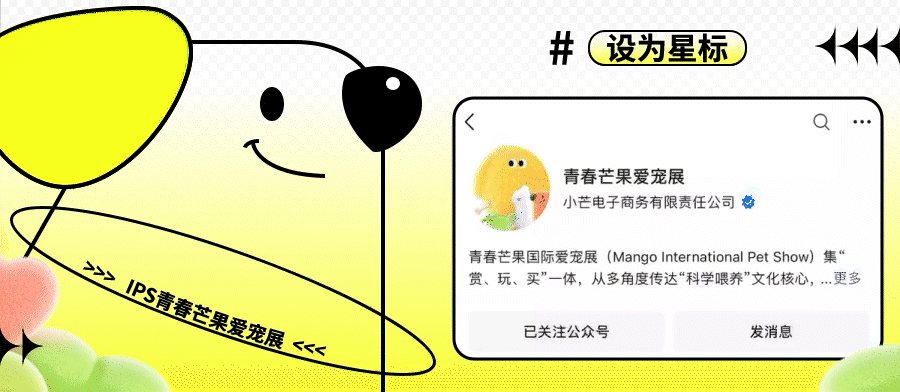 IPS青春芒果爱宠展精准垂直链接宠物行业优质品牌及年轻化养宠消费群体,凭借芒果TV的线上内容优势引领,深挖宠物品牌、渠道及年轻养宠爱宠群体需求,引领科学养宠生活态度,打造多元化、沉浸式、年轻化、有活力的宠物行业年度盛会,实现芒果基因产业链与宠物产业的深度融合。