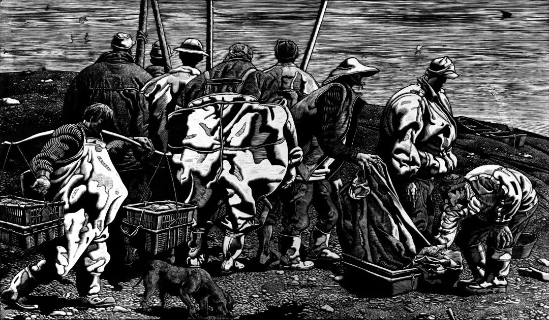 陆声设,《神泉渔丰》,木刻,200X120CM,2013