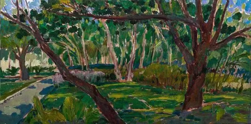 文祯非,《行-园林》,布面油画,80x200㎝,2020