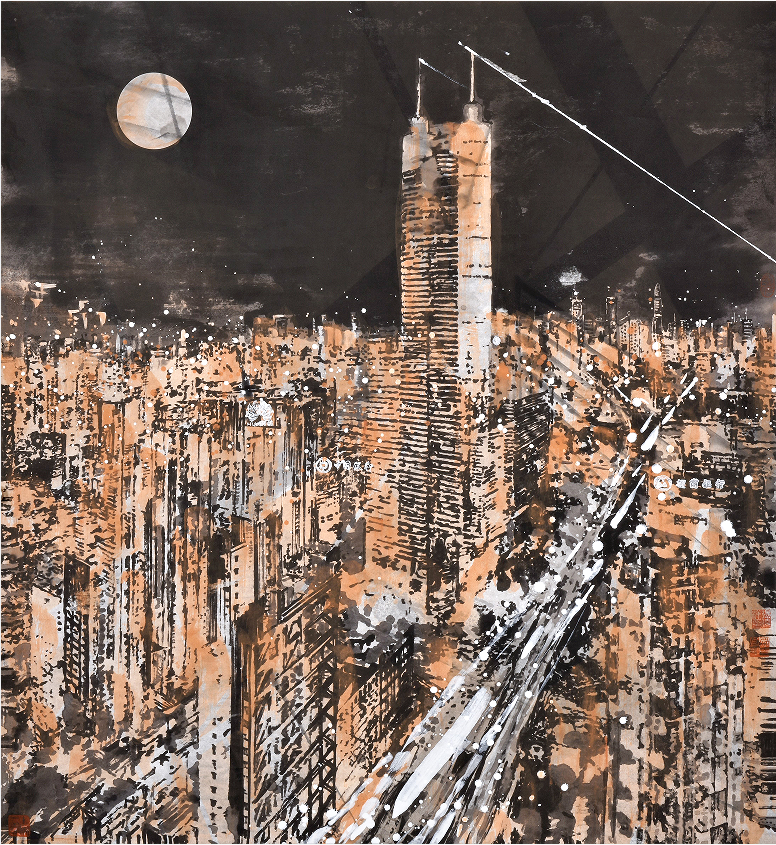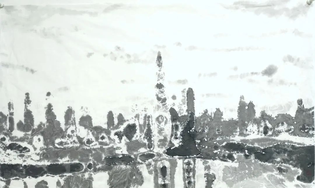 杨晓洋,《一夜之城》,纸本水墨,68x68cm,2021年