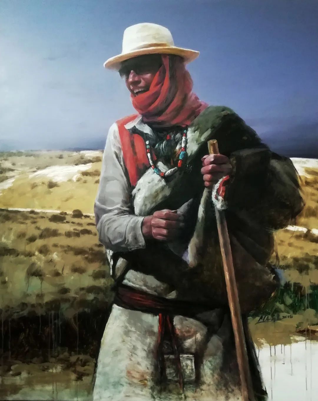 马英良,《幸福的养路工》,布面油画,170X150.cm