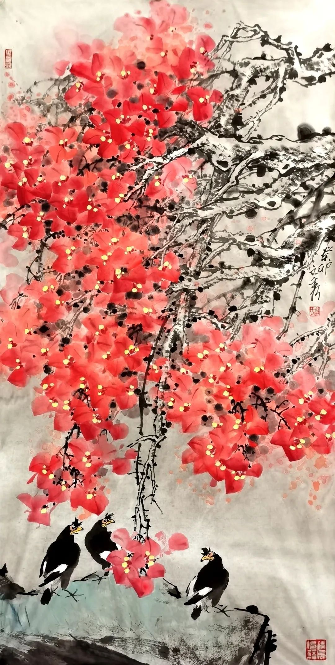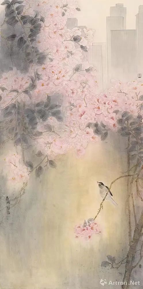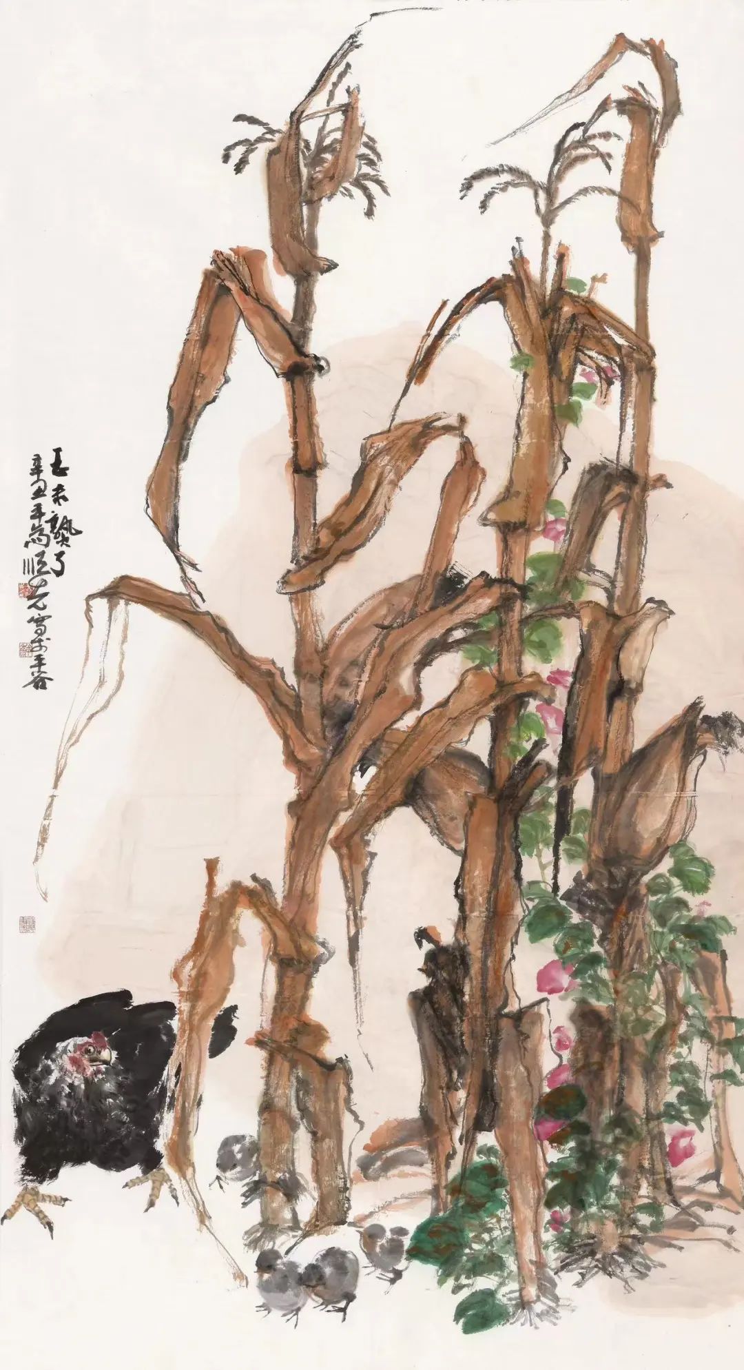 陈琼贵,《春晚绿野秀》,纸本设色,140cmX70cm,2023