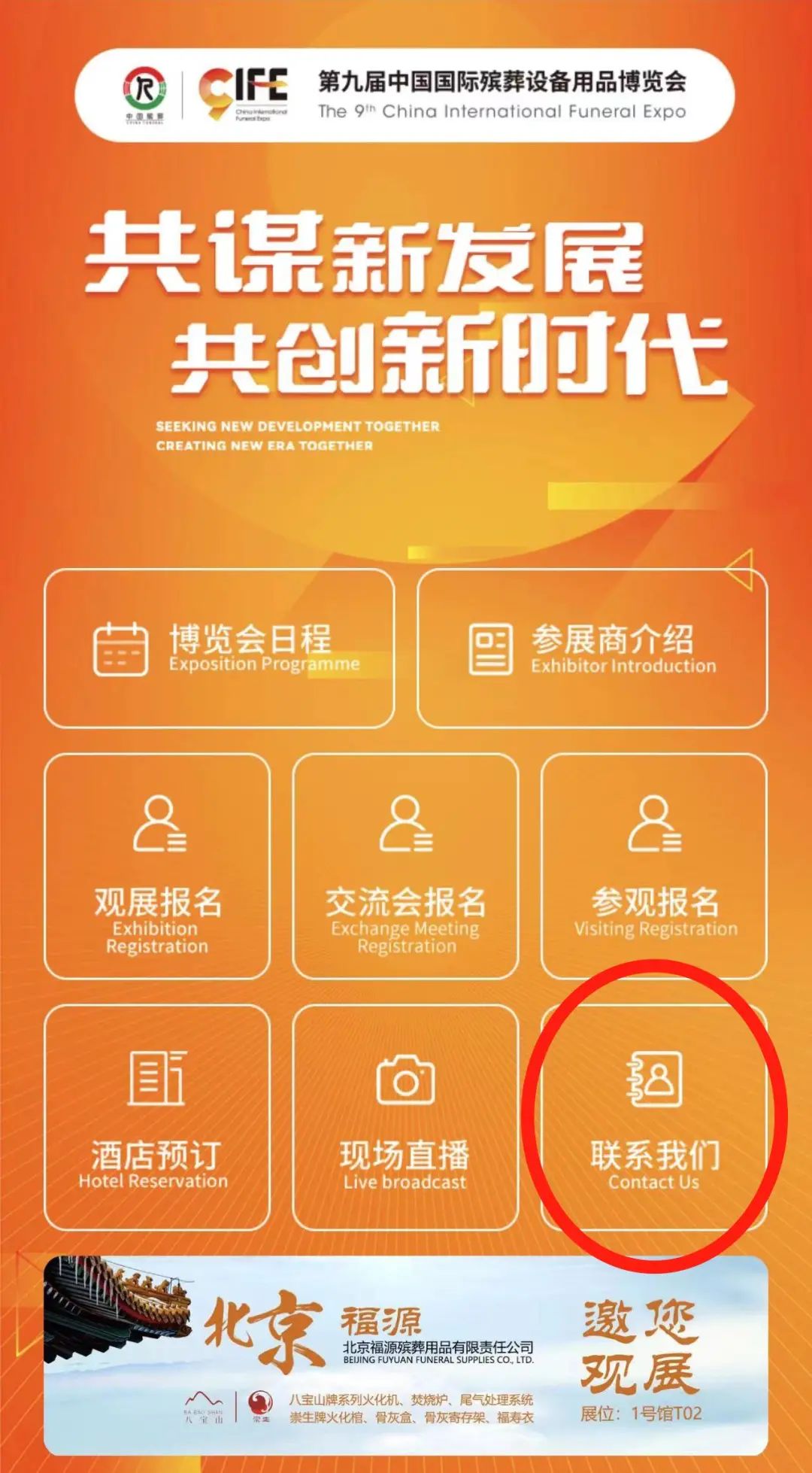 本届博览会全程线上线下双线服务,可登陆第九届中国国际殡葬设备用品博览会数字微站(点击最下方“阅读原文”即可跳转)查询,其中涵盖了博览会日程安排、参展商介绍、住宿预订,博览会期间相关活动也可通过微站报名。此外,如需电话沟通,可点击微站中的"联系我们”,点击相关负责人即可拨通电话询问。