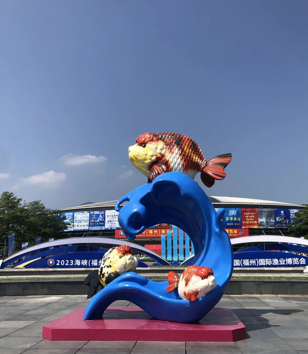 福州,这座美丽的海滨城市,近日迎来了一场盛大的渔业盛会——2023年海峡(福州)渔业周·中国(福州)国际渔业博览会(简称“渔博会”)。作为这次博览会的一大亮点,位于福州海峡国际会展中心广场上的一座五米多高的金鱼雕塑特别吸引眼球,为整个展览增添了一道亮丽的光彩。