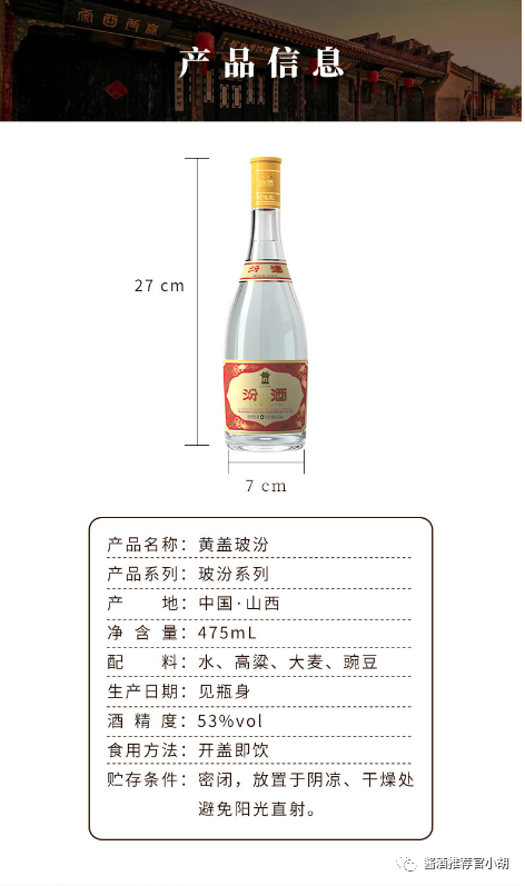 汾酒 黄盖玻汾 清香型高度白酒 53度 475ml*6瓶 整箱装