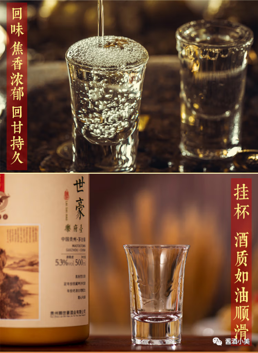 这款赖世豪乐府台是以8号坤沙酒为基酒和12号坤沙老酒调味,所以老派浓郁的酱香味很足。 开盖有浓浓的粮食香,倒入杯中,闻着酱香突出、无沉淀物,酒质清澈,酒花细密经久不散,酒体黏稠,轻轻摇晃能看见明显挂杯。