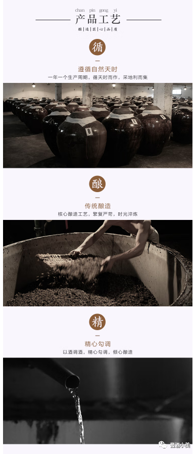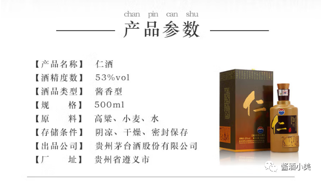 茅台仁酒是采用黔北特产的优质高粱和小麦,和赤水河天然的水源作为原料,采用两次投料、多次发酵,一年一个生产周期的酱香型大曲白酒酿制生产工艺,坚持高温制曲、高温堆积、高温摘酒,基酒经贮存后采用模块化方式进行勾兑,成品酒经严格检验方可出厂,可谓滴滴精品。