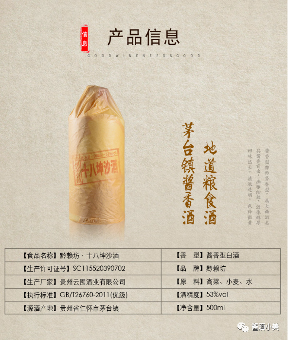 此酒是按茅台镇传统工艺而酿造的基酒,酒体干净,入口顺滑,不辣喉,回味悠长,空杯第二天还留香之特点,实为推荐的口粮酒。