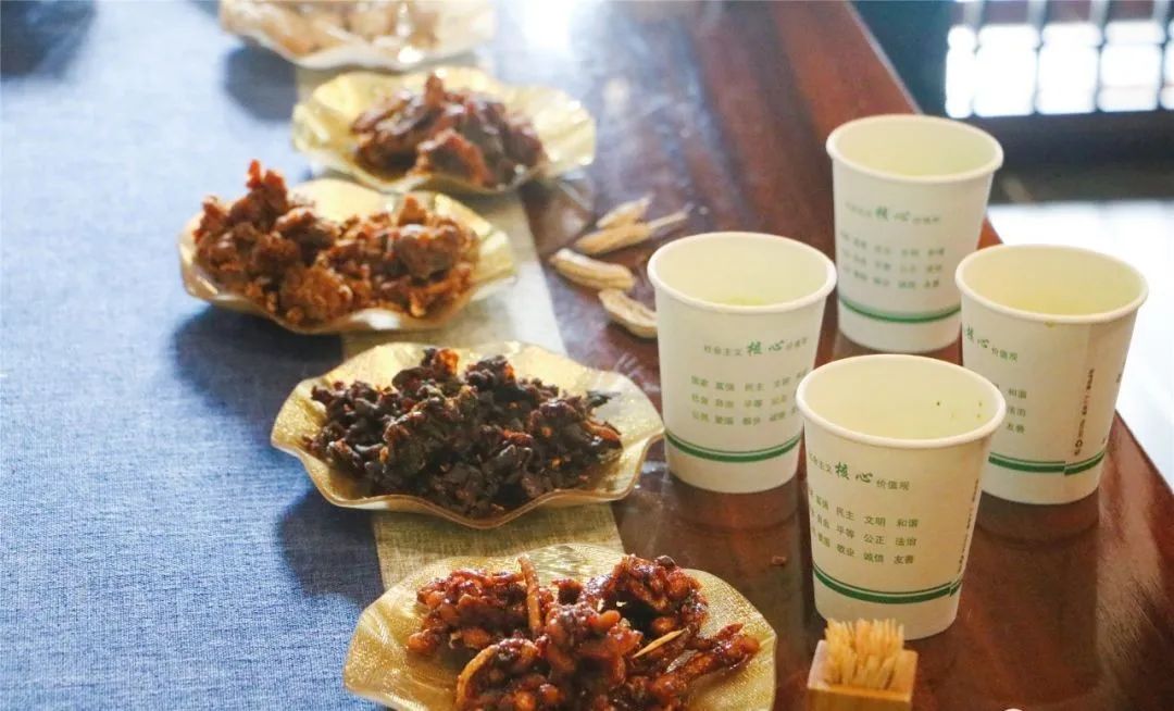 随后,大家又来到毛㙦民俗村——海木源酒坊、海木源民宿、农产品展销中心、采茶剧院等地,品尝了新干特色擂茶和小吃,一路上,大家欢声笑语、亲密无间,通过游玩增加了企业之间的互相了解。