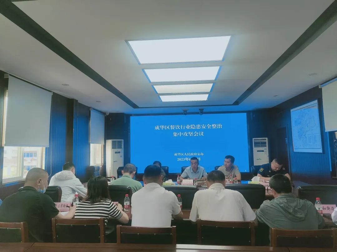 为夯实夯细前期整治基础,强化专项整治措施,加大专项整治力度,形成整治行动合力攻坚阵地,2023年6月6日上午,成华区政府安办组织辖区12个属地街道(管委会),市场、商务、经科、消防等区级部门召开成华区餐饮行业安全隐患整治集中攻坚会议。