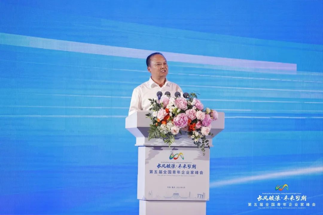 2023年6月5日,由全国工商联、共青团中央、重庆市人民政府联合主办的第五届全国青年企业家峰会在重庆渝州宾馆成功开幕。此次峰会以“长风破浪未来可期”为主题。 重庆市委常委、统战部部长卢红,重庆市副市长江敦涛,全国工商联、重庆市有关部门负责人,全国工商联青年企业家委员会成员、中国青年企业家协会成员代表、全国工商联直属商会青年企业家代表、全国工商联餐饮业委员会企业家代表、各省市青年企业家代表参加开幕式。全国工商联餐饮业委员会主席团成员、顺德区饮食协会会长、顺德聚福山庄饮食集团董事长卢远森受邀出席。