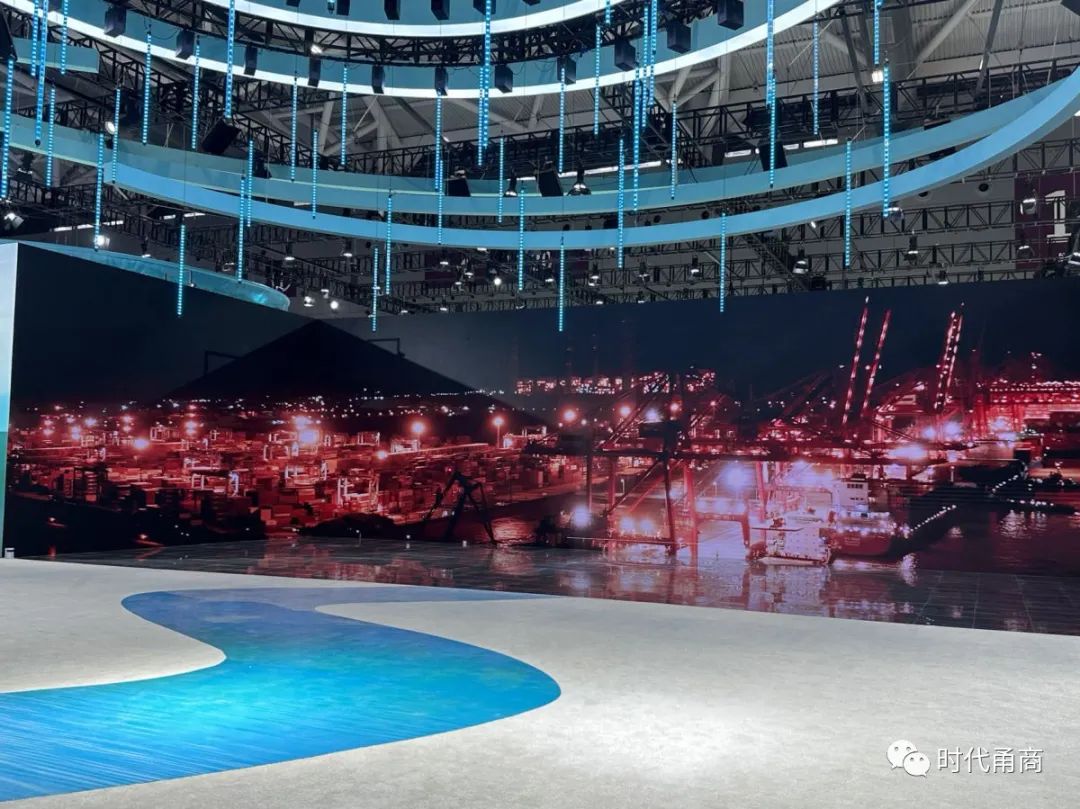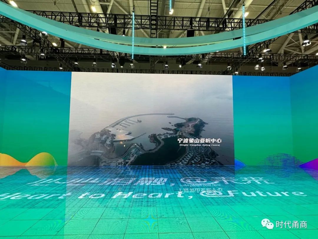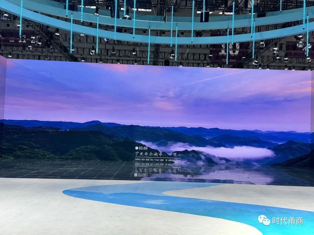 在浙江展馆,数字化手段营造出“交叠时空”之感,观众在馆内能“一镜飞越山海湖泊,一秒穿越历代古画,一键通晓千年文脉”。踏上“光影万象·水墨江南”和杭州亚运会的沉浸体验之旅。四明山、宁波舟山港、半边山沙排中心、象山亚帆中心等多个宁波元素在大屏幕上滚动播出,令人仿佛置身数字画卷中。