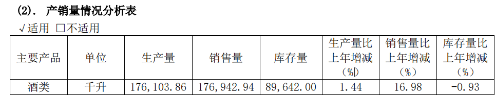 山西汾酒就是这样一个例子。它的库存也少,它的销量17.6万吨,库存8.96万吨,所以老酒相比于销量来说是比较少的。