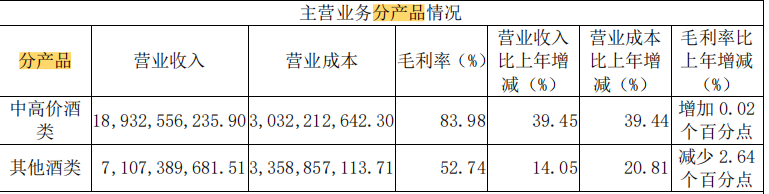 中高价酒类有:青花汾酒系列、巴拿马汾酒系列、老白汾酒系列、青享竹叶青系列等其他酒包括:普通汾酒系列、普通竹叶青系列、杏花村酒系列等山西汾酒在2021年以前没有清晰的界定等级,在2022年才在年报里面区分中高价酒和其他酒。