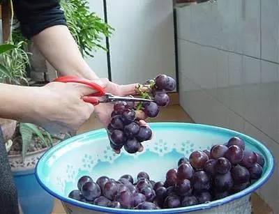 2. 洗葡萄的时候,切忌过度清洗。家庭简易酿葡萄酒,需要依靠葡萄皮表面的天然酵母,否则发酵启动很困难。