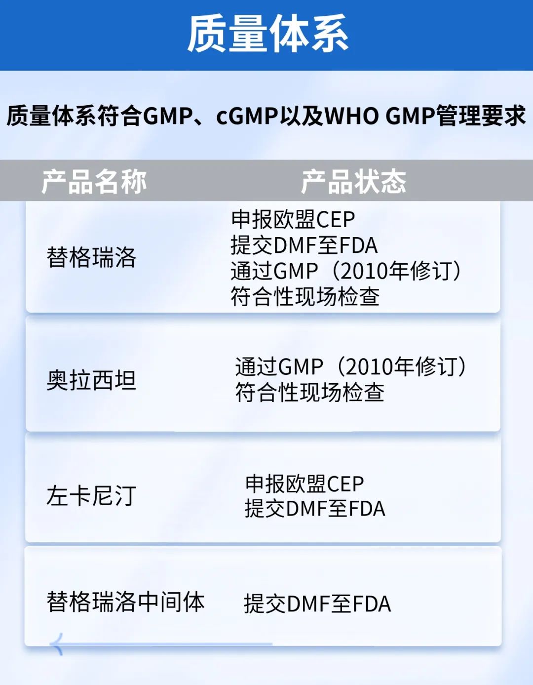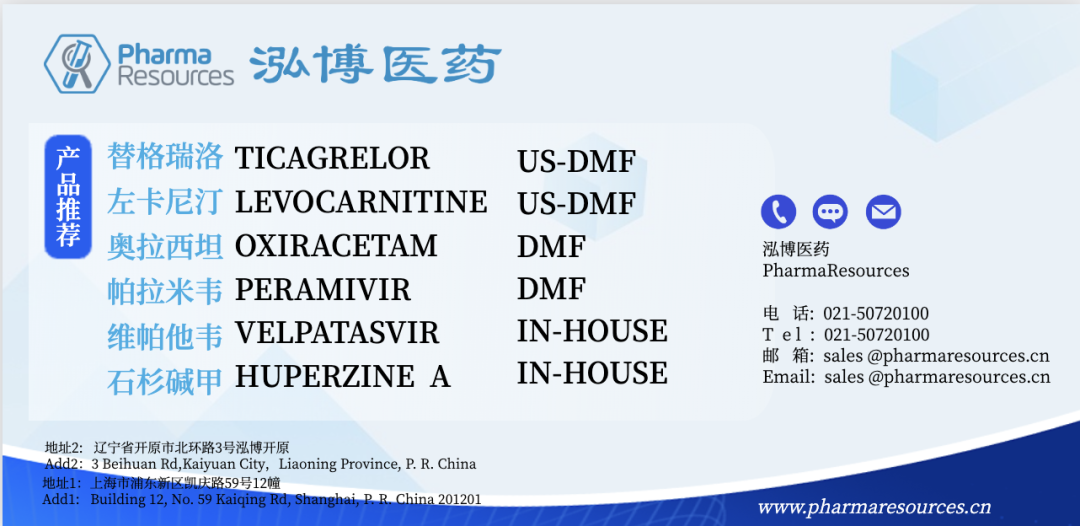 泓博医药在辽宁省开原市设有GMP生产基地,占地面积 6 万平方米,除了自有原料药产品替格瑞洛、 左卡尼汀、奥拉西坦、帕拉米韦等,也承接国内外众多创新药客户的CDMO业务。2020年8月,第三批国家药品集中采购替格瑞洛片有6家厂商入选,其中5家企业均为公司客户;此外,截至2021年底,向美国提交替格瑞洛DMF的国外企业有19家,公司是其中15家的合格供应商。