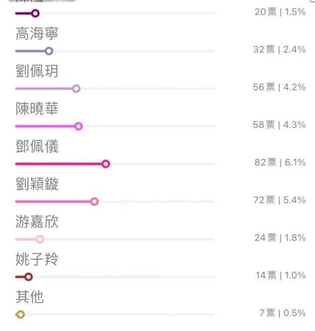 而姚子羚则惨遭垫底,仅获14票,甚至不敌初入行的新人郭柏妍。虽然网上投票有可能过于主观,准确性欠佳,不过也侧面反映姚子羚作为TVB一线女艺人,人气相当一般,想想还是挺憋屈。