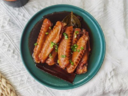 红烧中翅、糖醋藕丝、海带骨头汤、玉米米饭