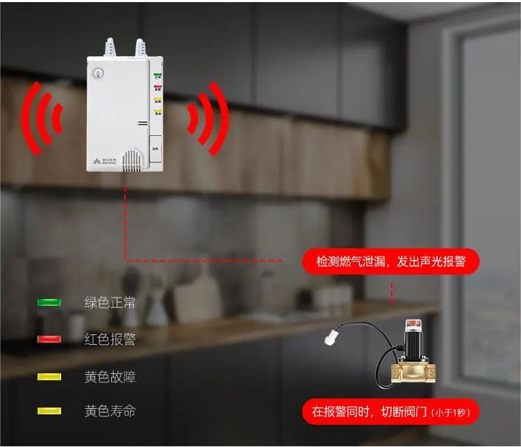 4、燃气报警器发出报警信号后应及时关闭燃气总阀,排除燃气泄漏风险方可再次用气。