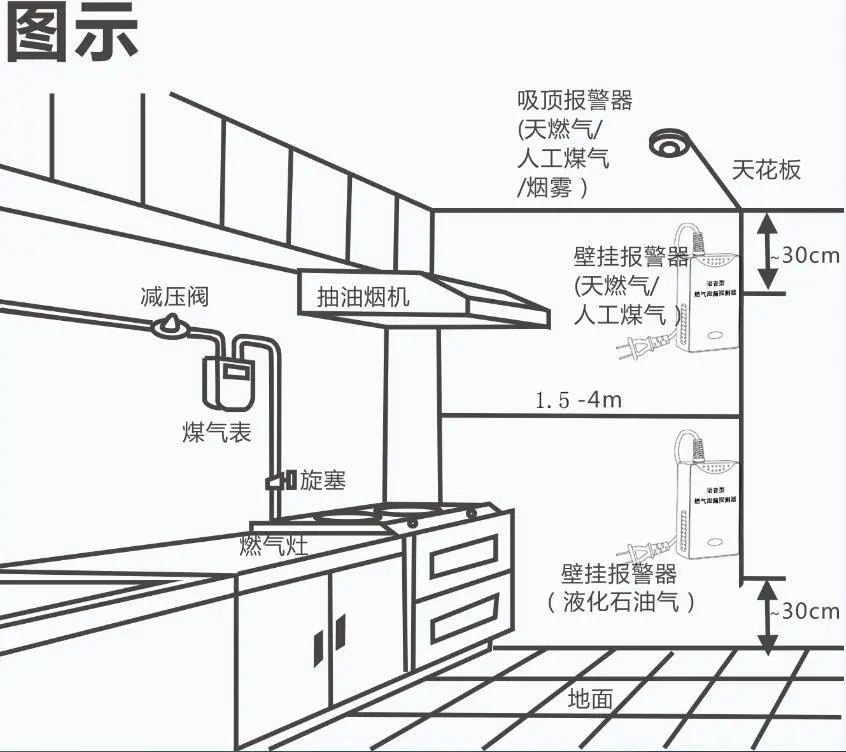 3、燃气报警器需保持供电,否则无法发出报警信号,使用过程中不要擅自断电;