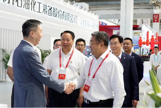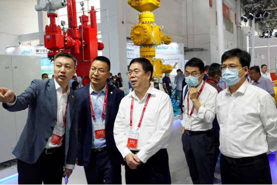 中国石油和石油化工设备工业协会(以下简称:中石协)会长、中石化原高级副总裁刘宏斌一行来到神开展台,实地了解了神开的参展情况,对神开展出的高温、高压设备能为超深井提供解决方案表示肯定。
