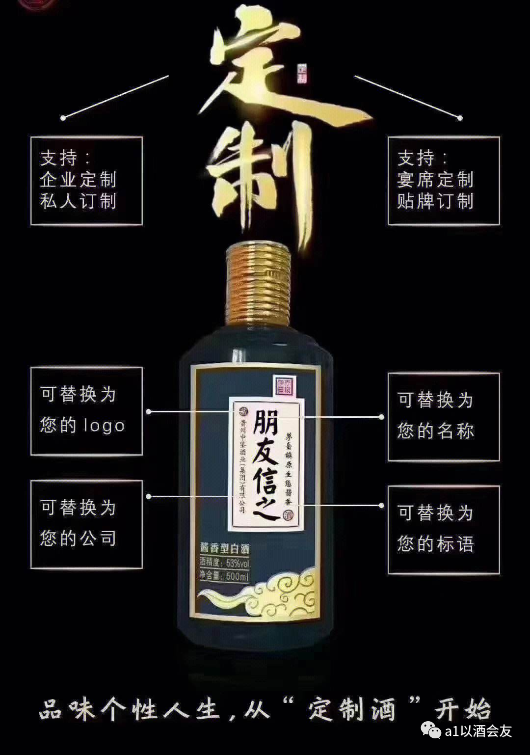 而企业定制酒针对的是酒厂根据企业个性化设计需求所量身打造的,在定制酒上印上企业名称和企业logo等信息,也打上了专属企业的标签。两者之间都是个性化定制酒,私人定制酒凸显出私人独特个性风格,而企业定制酒凸显出的不仅仅是独特个性风格,还有企业文化、品牌形象以及企业实力。