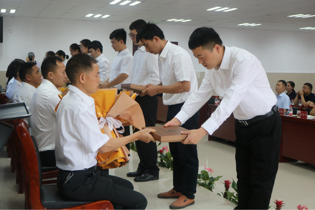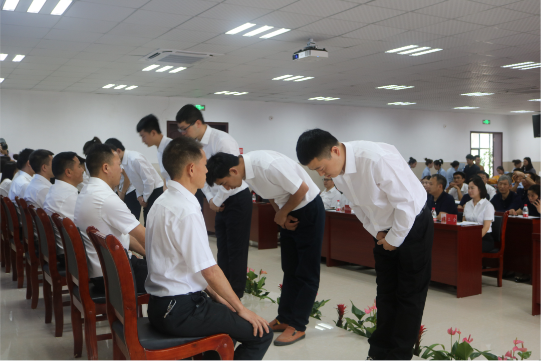 陈圣强指出,要统一思想,深刻认识“师带徒”活动的重要意义,公司目前正处于改革发展的关键时期,高速发展背景下的人才缺口是当下亟待解决的重要问题。要充分发挥“老带新”“传帮带”作用,加强新员工的教育引导和培训培养工作,锻造一批爱岗敬业、爱岗精业、技能技术过硬的工匠人才,让有想法、有耐心、有干劲的和义兴新生力量成长为酿酒传承能手,不断壮大和义兴的酿酒人才队伍,确保酱香酒工艺代际传承,持续丰富人才底蕴,确保能够满足公司生产、发展的新要求和新考验,进一步强化和义兴高质量发展的人才基础。陈圣强要求,要狠抓落实,确保“师带徒”活动在全公司开花结果。“师带徒”活动重在平时、重在日常,师傅要传真技术、真本领,充分发现和挖掘徒弟的潜能,要从如何提高工艺质量、降低操作风险等方面,积极传授发现问题、解决问题的方法和路径,提升徒弟解决问题的能力。要以“练兵比武”和“五项全能”为载体,赛培结合检验带徒成效,徒弟要积极参与公司理论技能竞赛,在活动中亮出学习成效,检验学习成果。要做好宣传,营造“师带徒”的良好氛围,广泛进行思想动员,让符合带徒条件的员工积极发挥传帮带作用,主动参与“师带徒”活动,切实传真经、拨真招,毫无保留地传授实践经验和操作技能,为公司培养更多优秀人才;要鼓励员工主动报名,充分调动员工参与师带徒活动的积极性,营造踔厉奋发、比学赶超的良好氛围;要在“师带徒”活动中发现、总结、树立先进典型,讲述“师带徒”工作的丰富成果和成功经验,扩大带徒效果,激励一线员工潜心钻研酿造技术、专注传承工匠精神,为和义兴高质量发展、现代化建设筑牢人才基石。会上宣读了《关于印发<贵州茅台酒股份有限公司和义兴酒业分公司师带徒管理办法>的通知》,并举行拜师仪式。仪式上,徒弟向师傅呈拜师帖、敬拜师酒、行三鞠躬礼并献花,师傅为徒弟赠送信物,并行“戒尺加身”仪式,师徒代表签订了《师带徒协议书》,师傅代表张鹏飞、徒弟代表邓艺琼作了表态发言。拜师仪式后,2021届优秀师傅陈良、徒弟钟显伦作了交流发言。师徒代表作表态及交流发言