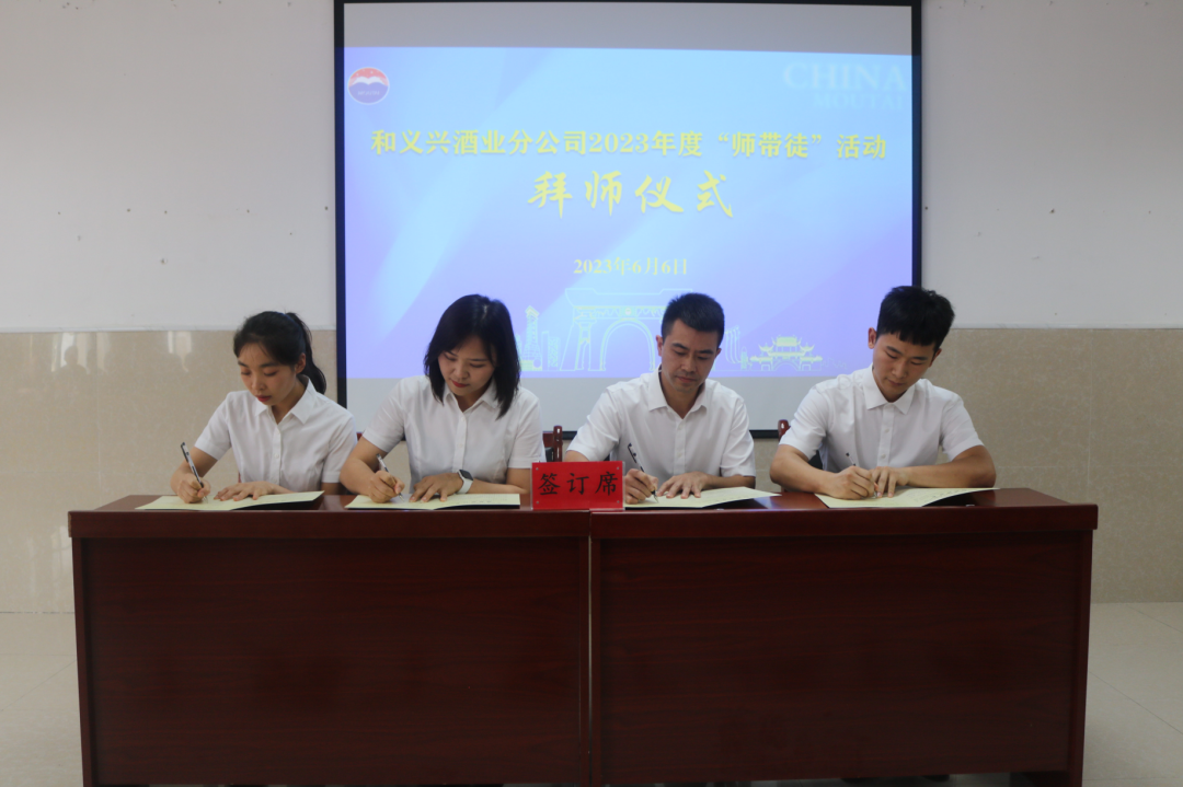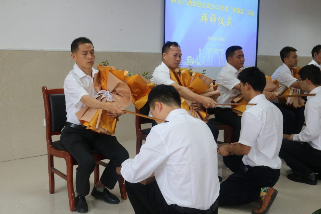 为认真传承茅台酱香系列酒传统酿造技艺,拓宽传统技艺的培训渠道,努力培养生产技术人才,6月6日,和义兴酒业分公司举行2023年“师带徒”活动启动仪式。