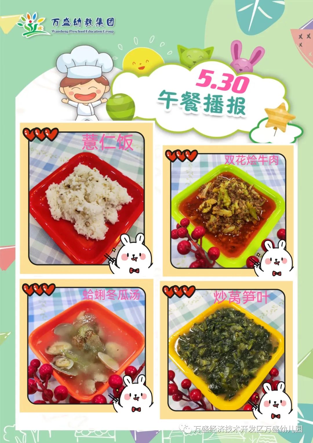 午餐:燕麦饭、滑蛋牛肉、素炒瓢儿白、番茄肉泥汤