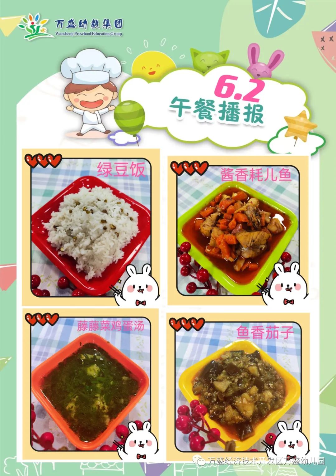 午餐:绿豆饭、香菇烧排骨、番茄炒鸡蛋、青菜丸子豆腐汤