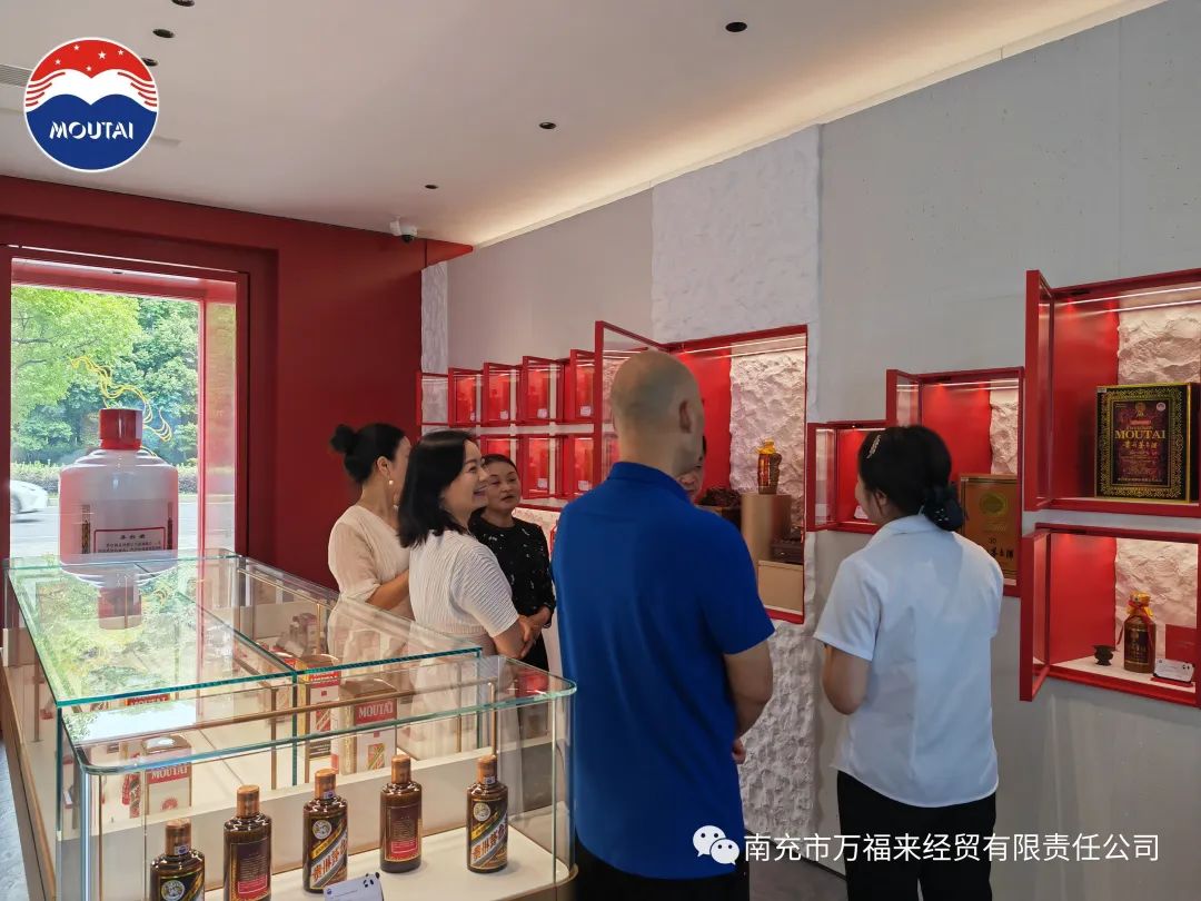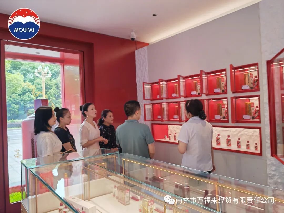 初到茅台专卖店,工作人员带领客户参观茅台专卖店,讲解介绍茅台产品。