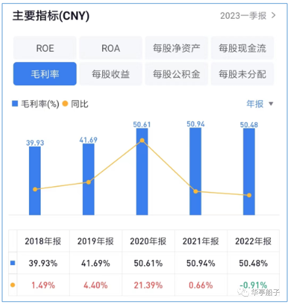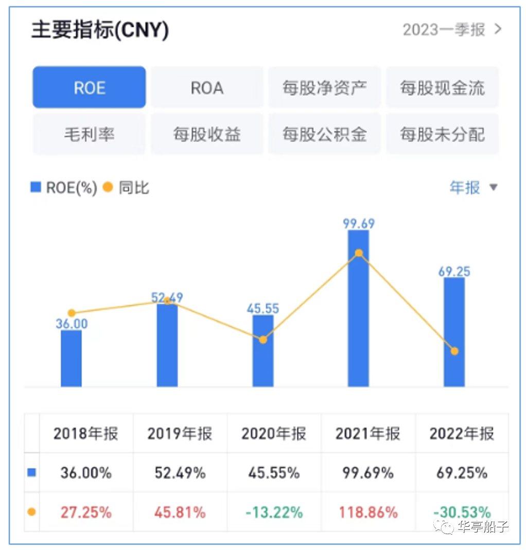 2018年至2022年,公司的ROE维持在35%以上。尤其是2021年达到了99.