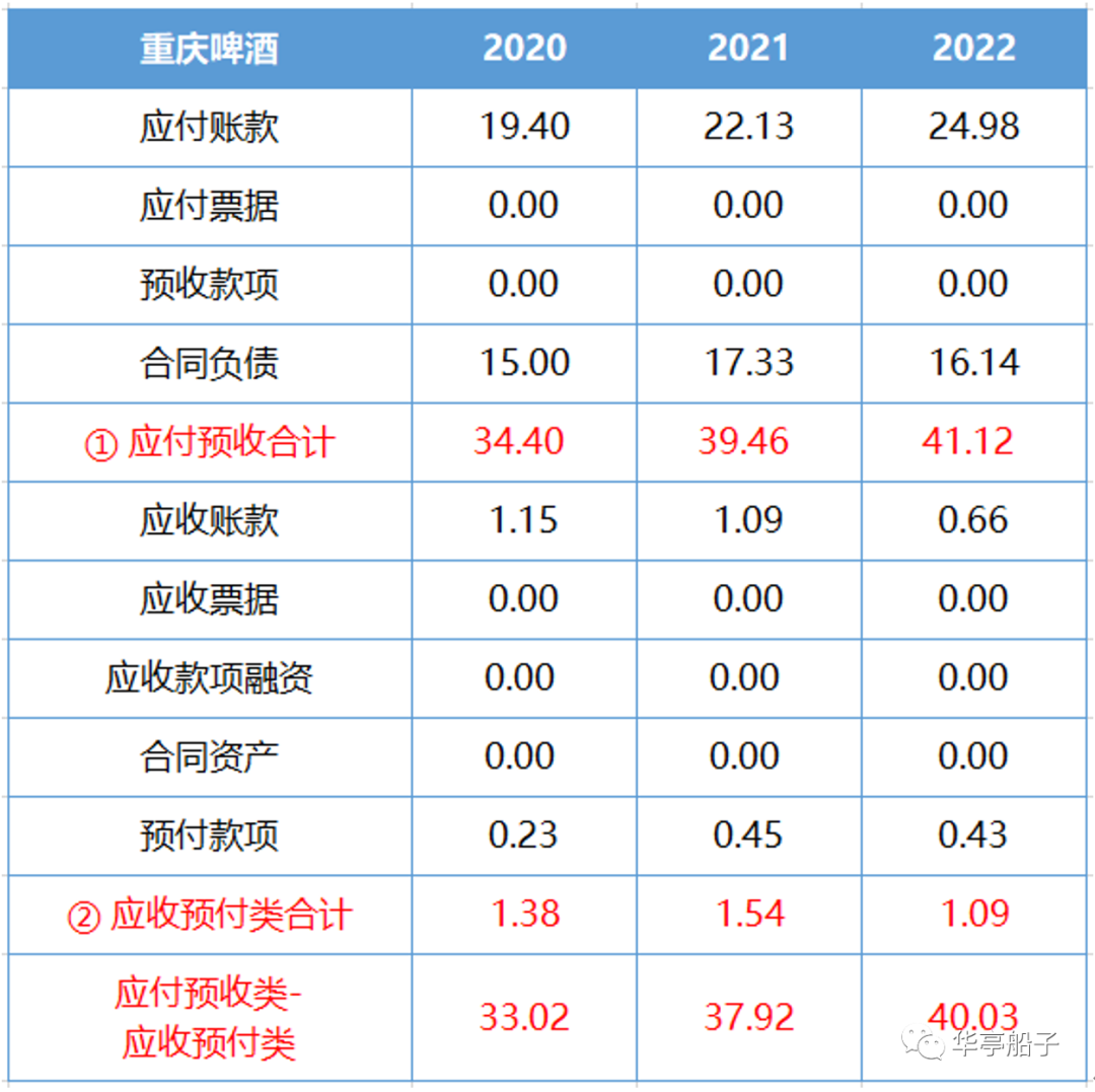 近三年来,重庆啤酒的【应付预收-应收预付】始终为正值,且逐年增长,说明重庆啤酒在产业链中具备非常强的话语权,无偿占用着上下游数十亿元资金,产业链地位非常强势。