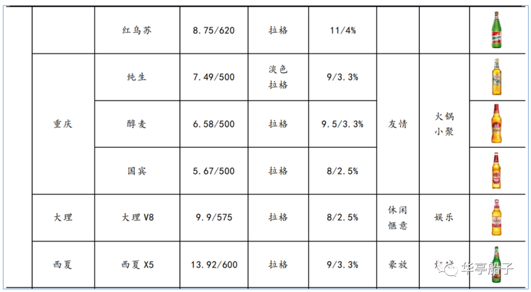 早期由于价格竞争,啤酒市场主要以同质化的工业淡啤为主,麦芽浓度一般在8~9度,酒精浓度一般不超过3. 6%vol,单瓶容量一般为500ml.而乌苏啤酒却别具一格,麦芽浓度高达11度,酒精浓度达4. 0%,单瓶容量为620ml.