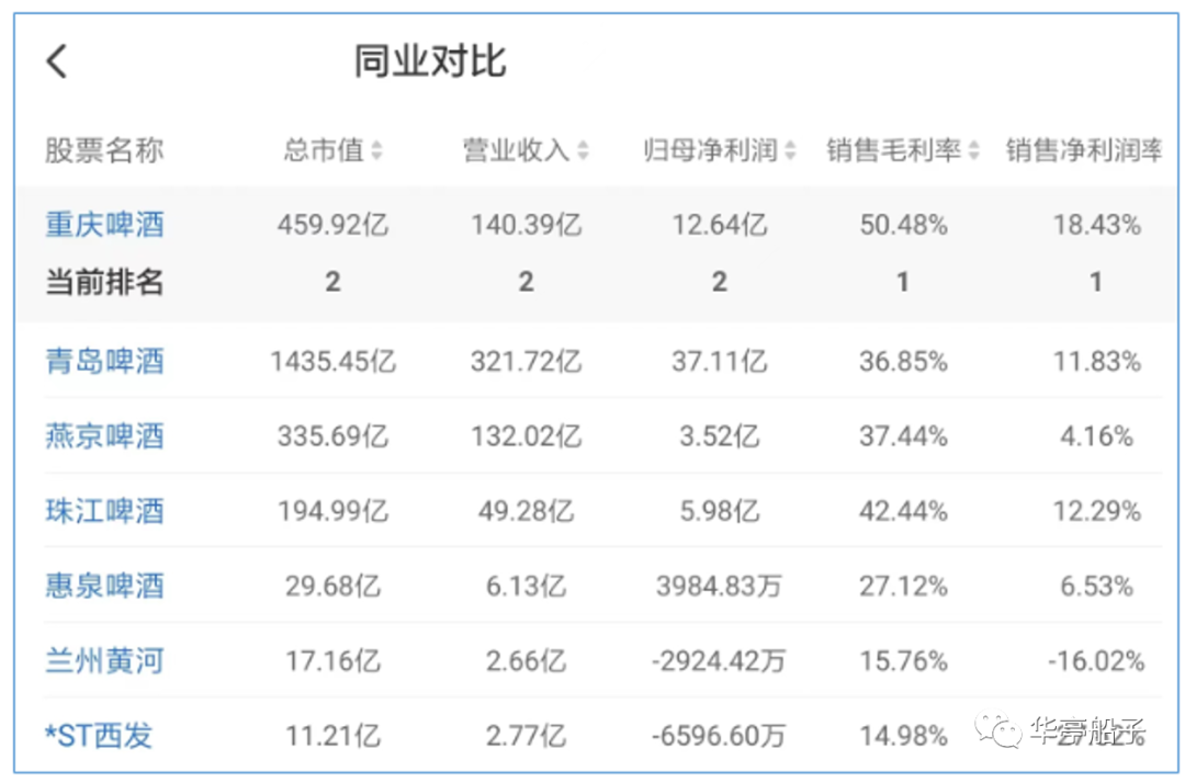 对比来看,重庆啤酒的盈利能力是非常强的,远高于其他啤酒企业。