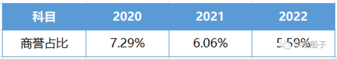 2020年,公司的商誉占比为7. 29%,此后随着总资产的增长,商誉占比有所下降。