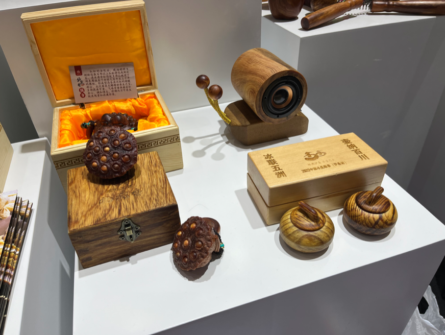 文博会期间,我市重点展出了伊春永达工艺品有限公司设计制作的北沉香摆件《吉祥如意》,伊春市美江木艺有限责任公司设计制作的木拼画《岁寒三友》、山核桃花瓶、北沉香手把件,嘉荫县委宣传部推荐的宣传片《灵韵嘉荫、激情冰雪》,参展项目不仅在展会上博得参观者的青睐,也体现了伊春林区文化创意产业特色,促进我市文化创意产品和服务“走出去”。