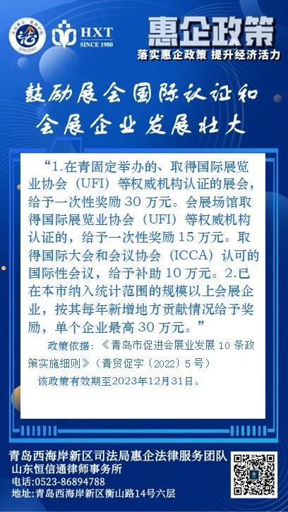 惠企政策——鼓励展会国际认证和会展企业发展壮大