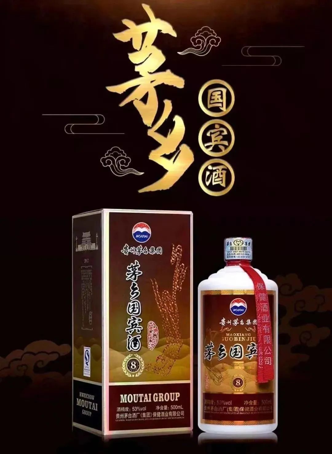 贵宾(8)一款酒是茅乡国宾酒茅台酒系列产品。茅乡国宾酒是以优质高粱、小麦为原料,秉承茅台酒传统工艺、精心酿造、勾兑而成的优质酱香型白酒。茅乡国宾酒具有酱香明显、幽雅舒适、协调醇和、回味较长、空杯留香,饮后不上头的特点