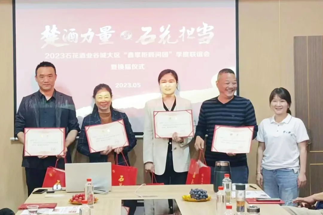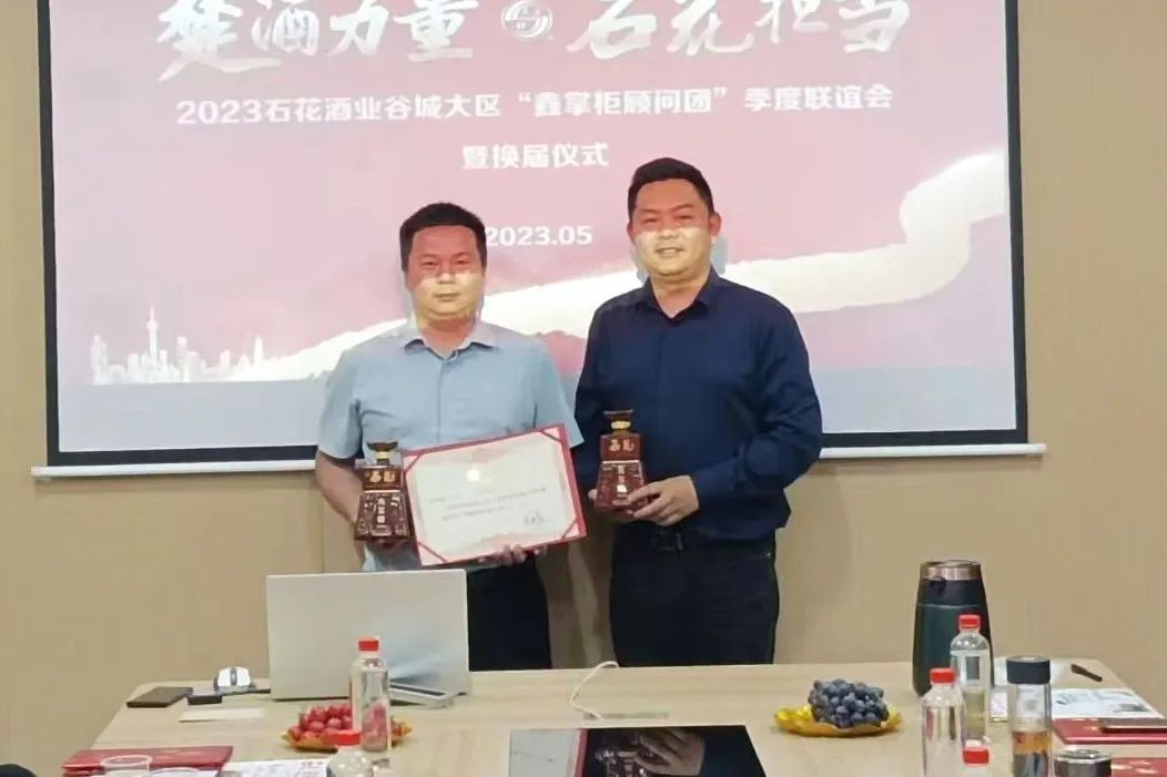 近日,石花酒业营销管理总部谷城大区连续举办多场联谊会,与各区域、各板块的合作伙伴们齐聚一堂,共商大计、共谋发展。谷城大区"鑫掌柜顾问团"季度联谊会暨换届仪式成功举办5月23日,2023石花酒业谷城大区鑫掌柜顾问团季度联谊会暨换届仪式在谷城美琪酒店成功举办。会议选举产生了石花酒业谷城大区新一届的“鑫掌柜顾问团”主席团成员和轮值主席。石花酒业营销管理总部石花大工匠事业部副总经理、谷城大区总监杨健康以及谷城大区“鑫掌柜顾问团”成员参加换届仪式。
