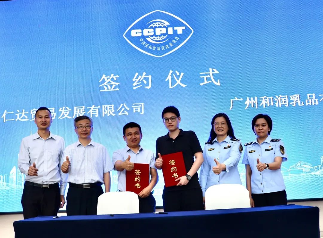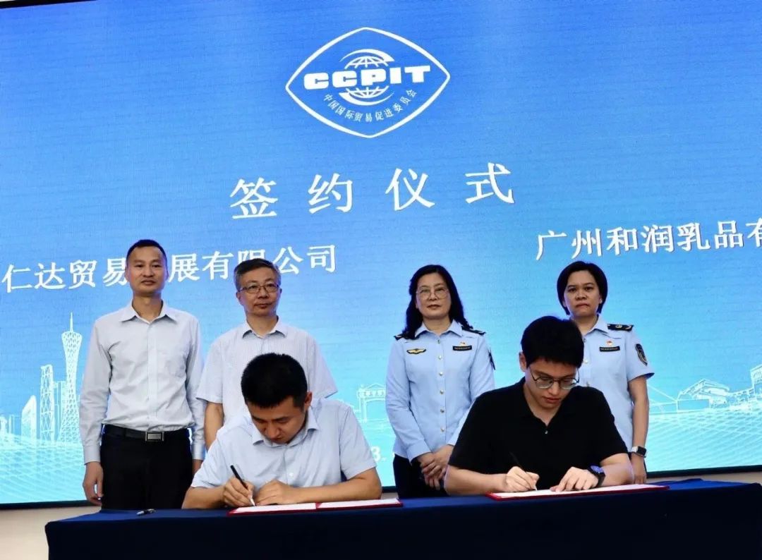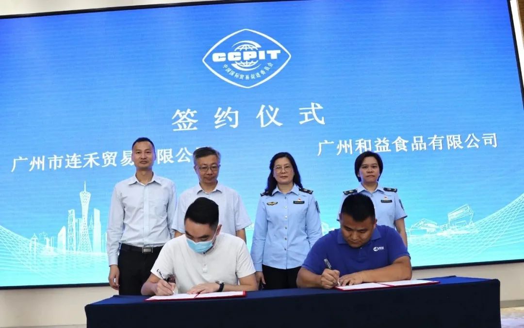 会上,广州市连禾贸易有限公司和广州和益食品有限公司、中山市仁达贸易发展有限公司和广州和润乳品有限公司分别签订了合作意向协议,双方就服务对接合作等方面达成了战略合作,有效促进企业互利发展。