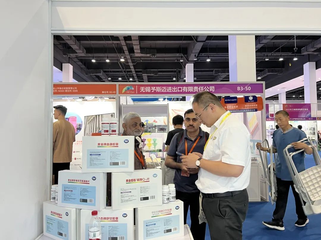 健特药业总经办主任葛娟,营销中心招商副总监沈沥雯、招商部经理高建业一行4人,代表无锡健特药业参加了此次展会,携年轻态系列,带来源头品质高性价比好物,为买家提供多样选择,助力资源高效对接。
