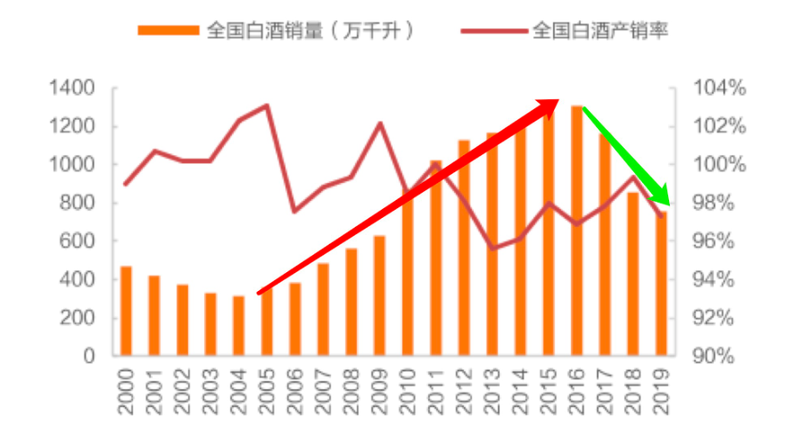 其实我国白酒产量在2016年达到峰值后就一路下降了,截止去年已经是6连降了,整个产业的产能过剩是明摆着的,况且还有其他酒类带来的横向竞争,白酒行业是存量竞争时代毋庸置疑。