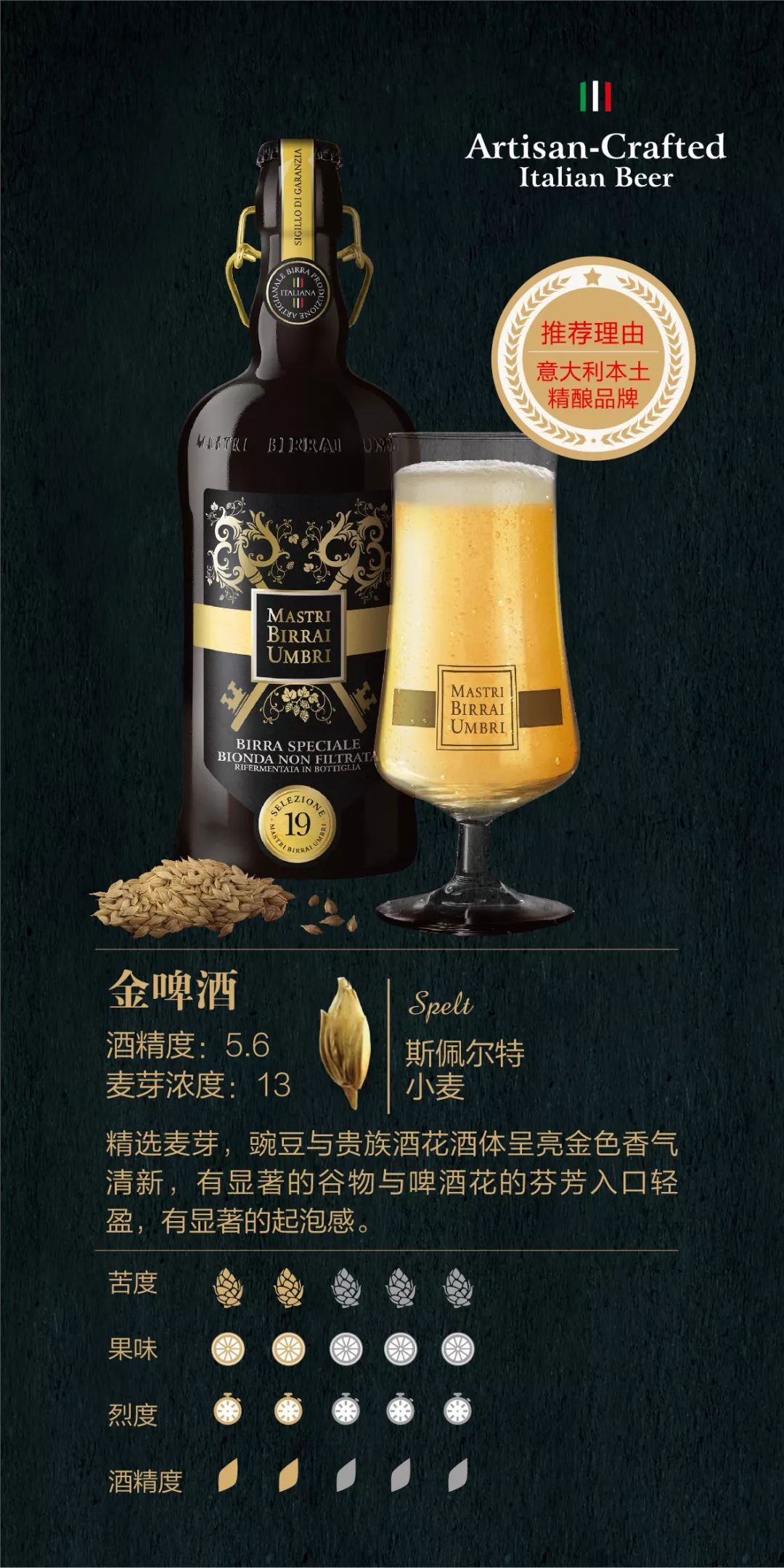 TA就是在享有“意大利绿色心脏”之称的翁布里亚地区,将意大利奢侈品精神发挥到极致,有着啤酒界大师级经典之作的啤酒——Mastri Birrai Umbri “翁布里亚大师”系列!