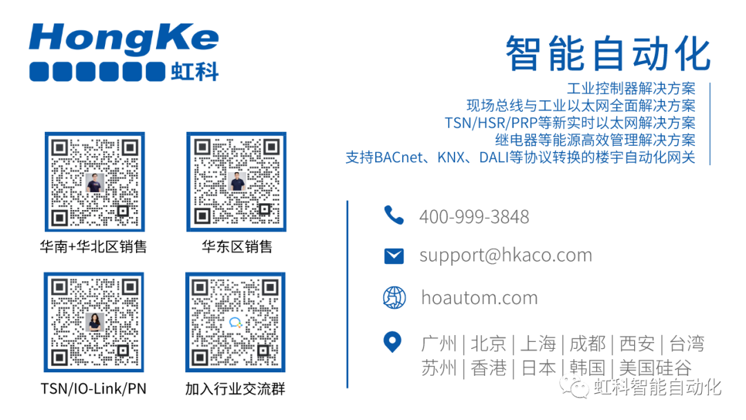 虹科是一家在工业自动化领域,特别是工业总线通讯行业经验超过15年的高科技公司。虹科智能自动化事业部与欧洲和美国的世界知名工业自动化、能源管理与楼宇自动化专家展开深度合作,提供业内顶尖水平的通信协议的软硬件解决方案,通信技术类型涉及工业自动化通讯协议【CAN、CANopen、EtherCAT、PROFINET、EtherNet/IP、IO-Link、OPC UA、MQTT、TSN】等,解决方案包含:代码、芯片/模块、板卡、网关、IO、工控机、继电器、测试方案、培训和开发服务等。因此,虹科是国内为数极少的在OT领域深耕多年并技术经验全面的供应商。