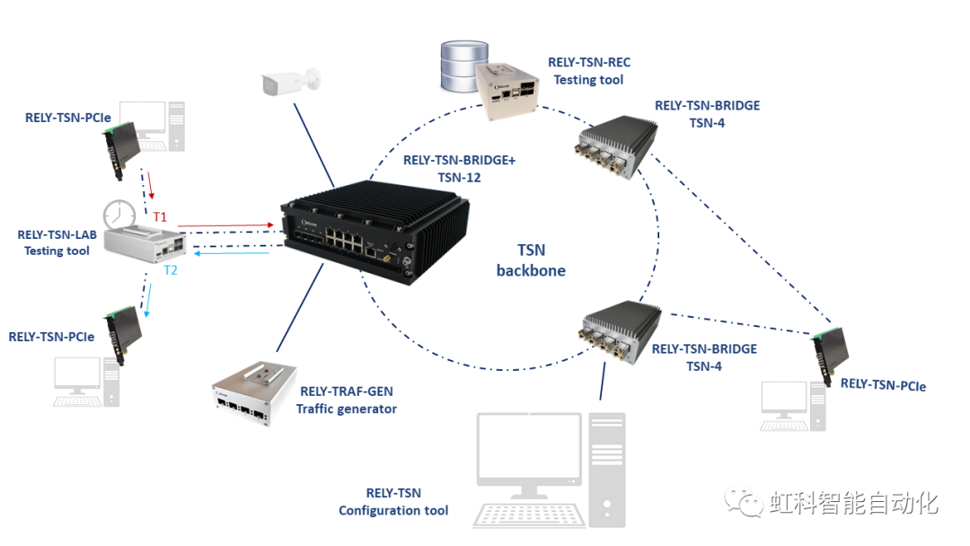 提供多端口接入点和支持使用各种TSN技术的设备和应用程序接入外,还提供支持TSN技术的测试工具,这些测试工具可以模拟各种流量类型和生成TSN测试报告通过向TSN终端设备或是流量发生器发送数据包,并记录数据传输的延迟和抖动等指标,测试TSN网络的实时性和可靠性。