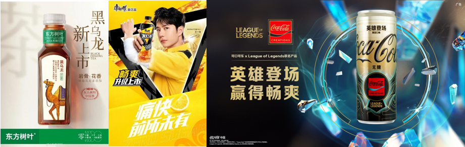 今年上半年饮料市场已经涌现出至少30余款新品。和过去一两年情况不一样的是,今年推广力度较大的并不是饮料行业的新消费品牌,而是更多来自可口可乐、农夫山泉、康师傅、统一和三得利等饮料大公司的新品。例如今年4月26日,农夫山泉东方树叶推出新品黑乌龙茶,其饮品添加了特级乌龙茶,0糖0卡0脂,不添加香精和防腐剂,更注重健康。康师傅无糖冰红茶全新升级,改进配方,不仅大幅提升柠檬新鲜感,强化酸甜层次感,更让甜味和后余味提升,减少了代糖感,还原更真实的甜味,助推无糖茶的口感向前迈出一大步。康师傅还推出了莓果红茶新品,以“超级水果x红茶”的全新组合引领果茶口感新潮流。5月19日,可口可乐联合全球知名游戏开发商拳头游戏,以《英雄联盟》中的著名英雄“加里奥”的终极技能名称为灵感,推出限定款饮品“英雄登场”。“英雄登场”在可口可乐经典味道基础上增添了更多层次的美味,通过丰富的味道打造出神秘的“英雄登场”,带领消费者领略畅爽淋漓的胜利滋味。可口可乐新品为当代热衷于游戏的玩家们带来全方位的畅爽体验,顺应年轻潮流的游戏文化,同时进一步拓宽了消费市场。