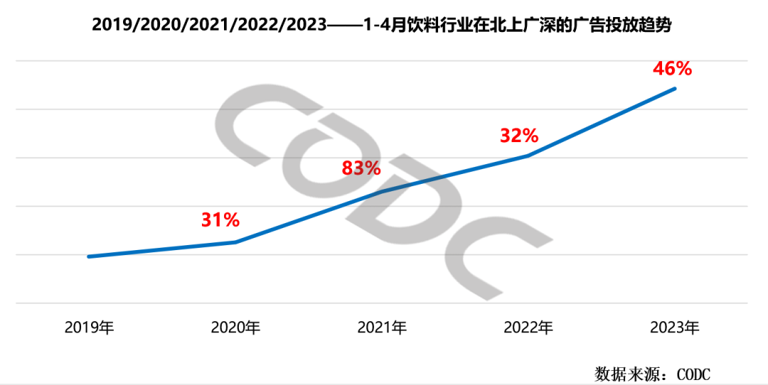 今年1-4月饮料行业广告前十品牌排名与疫情前的2019年同期相比,国际品牌明显减少,除COSTA品牌外,各大品牌都来自国内企业,国产品牌的快速发展,以上升为行业广告投放的主流,也是饮料行业广告增长的重要推手。