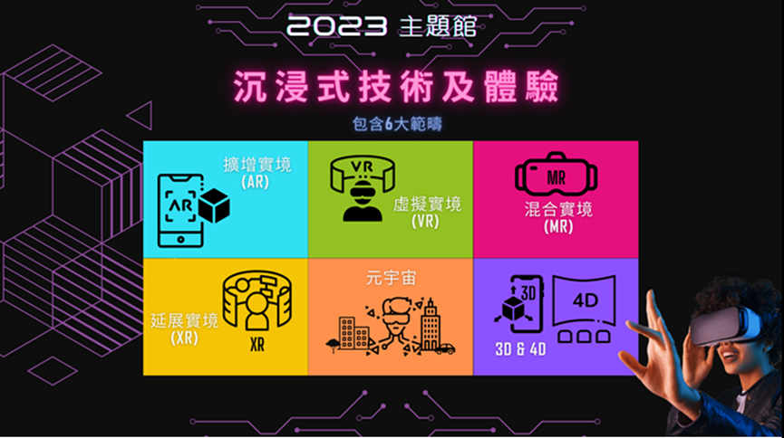 今年特别增设「沉浸式技术及体验区」,聚焦AR界、XR界、3D/4D界、元宇宙界等六大范畴,让企业在现场展示沉浸式影像技术及方案,为各大小企业推广业务及建立品牌形象。